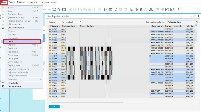 Mantener limpia la lista de partidas abiertas no es solo una buena práctica de orden: impacta directamente en el stock comprometido, la planificación de entregas y la integridad del cierre contable mensual. Se recomienda revisarla de forma periódica junto con las áreas de ventas, almacén y tesorería, sin esperar al cierre anual.