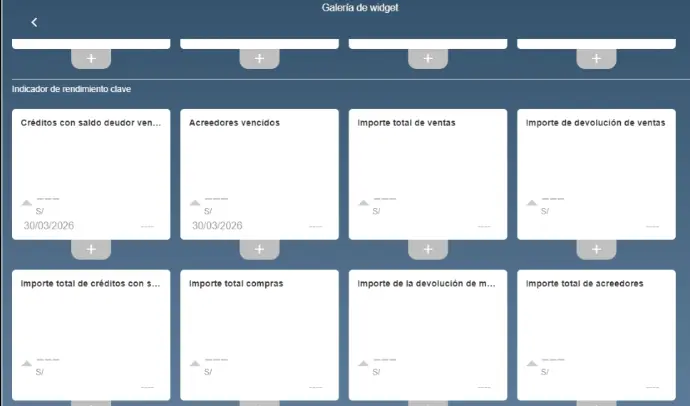 SAP B1 incluye widgets prediseñados que puedes activar según el rol de cada usuario: