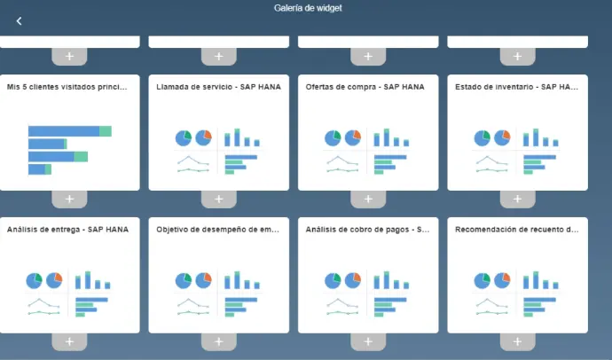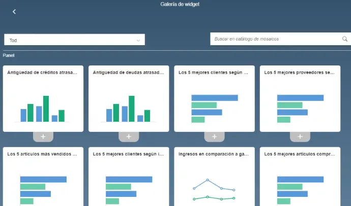 SAP B1 incluye widgets prediseñados que puedes activar según el rol de cada usuario: